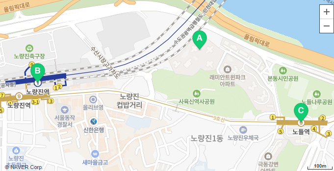 노량진역 (1호선, 9호선): 도보 약 7분 (534m)