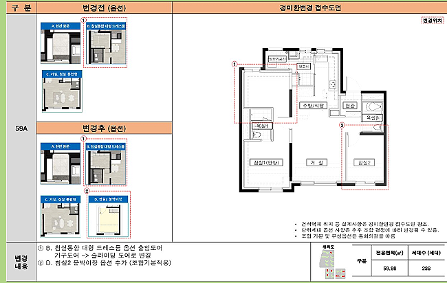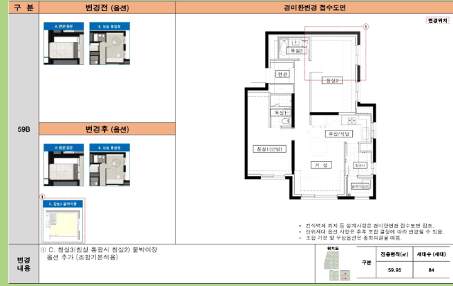 59C 타입: 59A 타입과 유사하지만, 주방과 거실의 배치가 달라 보다 넓은 개방감을 제공합니다.