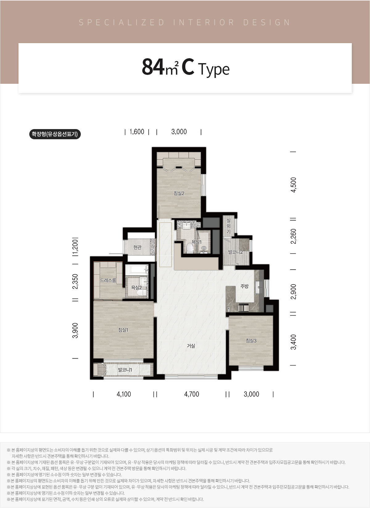 ✅ 공급 면적: 전용면적 84㎡ A, B, C 타입 (단일 평형)
